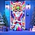 クリスマスのブラックライトドアカバー、巨大なクリスマスギフトボックスを持ったサンタクロースを描いたお祭りのホリデーカーテン、クリスマスのホームデコレーション用の光る壁掛け