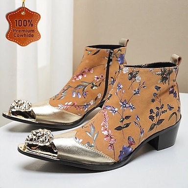 男性用 ブーツ バイカーブーツ レトロ風 ウォーキング レザー スエード イタリア製フルグレイン牛革 ウォーム 快適 すべり止め ブーティー/アンクルブーツ ファスナー バックルは含まれません Черный / желтый 春 秋 冬