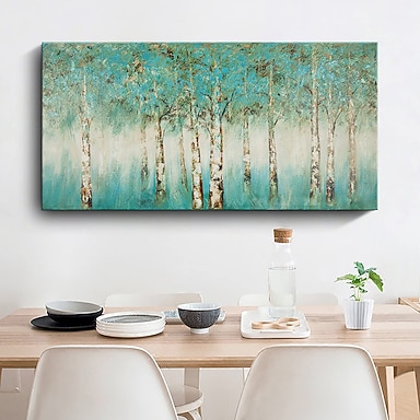 手描きの森の木の油絵手作りの雪景色の白樺の森の装飾画風景画大きな壁画アートギフトクリスマスプレゼント寝室リビングルームの壁の装飾