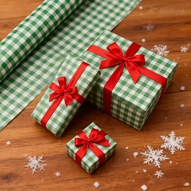 クリスマスギフトラッピングペーパー 1ロール、16.9インチ×169.8インチ、グリーン &白い格子縞、破れにくい厚手の丈夫な紙、エレガントでミニマリストなホリデーデザイン