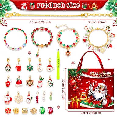 クリスマスアドベントカレンダーストッキングスタッフ 女の子 子供 ティーン 女性のクリスマスギフト、24日ブレスレット 2025年クリスマスカウントダウンカレンダー DIYジュエリー作成キットギフト 22チャームビーズ 2ブレスレット
