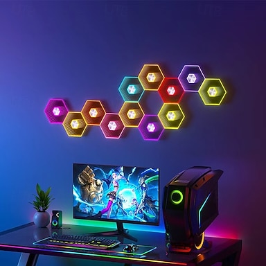 6/8/10/12/24個の六角形ハニカムライト、サウンド起動LEDウォールパネル、DIYモジュラーRGBライト、Bluetoothアプリコントロール、ゲームルーム、寝室、リビングルームの装飾、USB電源