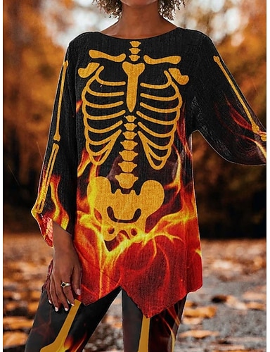 Womens Blouse Skulls Graphic Vintage Stylish Casual 3/4 Length Sleeve Crew Neck Regular Tops Daily Print White Yellow Pink Blue Orange Spring Fall