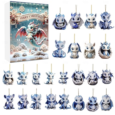 2025年クリスマスアドベントカレンダー、リアルでおかしいかわいい2Dドラゴンフィギュアセット装飾、クリスマスホリデー24日間カウントダウンカレンダー家庭装飾、ティーンズ大人向けのクリスマスギフト