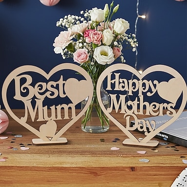 「ママ」の文字が入った母の日のハート型デコレーション。お母さんへのプレゼントに最適。母の日や家族の休日のテーブルデコレーションに最適です。