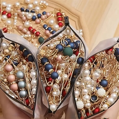 30個入り(ミックスサイズ) &スタイルフェイクパールブローチセット - 女性のためのエレガントな多目的ピン。服、スカート、ウエスト調整、スカーフ、日常着の固定に最適です。 &贈り物