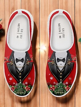 Men's Christmas Tuxedo Slip-On Shoes with Festive Print – Comfortable Lightweight Holiday Loafers for Parties and Celebrations