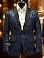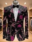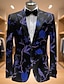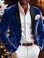 Men Winter Coat Velvet Blazer Formal Party Evening Wear Event / Party Elegant Classic Winter Fall & Winter 100% Polyester Velvet Solid Color Classic Single Breasted One-button Blazer Blue Black Red
