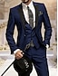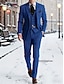 Men's Suits Office Work Navy Blue Spring & Fall Suit Peaked Lapel Elegant Fashion Solid Color Tailored Fit 2 Piece