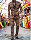 Men's Plaid Blazer Jacket Coat Fashion Comfortable Breathable Artistic Casual Daily Party Evening Wear Causal Pocket 3D Print Buttons All Seasons Notch Long Sleeve Red Brown