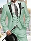 Men's Blazer+Vest+Dress Pants Blazer Business Work Party Fashion Streetwear Fall Winter Terylene Color Block Single Breasted Blazer White Champagne Light Green Pink