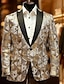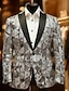 Men's Jacket Blazer Party Evening Wear Bar Party Favor Vintage Skinny Polyester Stripes and Plaid Glitter Windproof Single Breasted Blazer Silver Gold Rainbow