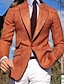 Men's Blazer Jacket Linen Blazer Business Work Evening Party Elegant Neutral Fall Winter Linen Solid Color Single Breasted Blazer Orange