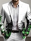 Men's Graphic Blazer Jacket Coat Comfortable Breathable Artistic Casual Daily Party Evening Wear 3D Print Buttons Multi Pocket Spring Fall & Winter Notch Long Sleeve Blue Red Green