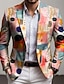 Men's Graphic Blazer Jacket Comfortable Artistic Casual Party Evening Wear Daily Festival 3D Print Buttons Multi Pocket Spring Fall & Winter Flat collar Long Sleeve Red Purple Orange