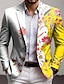 Men's Floral Print Blazer Jacket Coat Fashion Comfortable Breathable Artistic Casual Casual Daily Formal 3D Print Buttons Multi Pocket Spring Fall & Winter Notch Long Sleeve Blue Yellow Purple