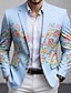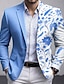 Men's Floral Print Blazer Jacket Coat Fashion Comfortable Breathable Artistic Casual Daily Party Evening Wear Causal 3D Print Buttons Multi Pocket Spring Fall & Winter Notch Long Sleeve Blue Pink