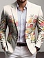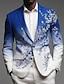 Men's Floral Blazer Jacket Coat Fashion Comfortable Breathable Artistic Casual Daily Party Evening Wear Pocket 3D Print Buttons All Seasons Notch Long Sleeve Blue Red Green