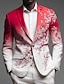 Men's Floral Print Blazer Jacket Coat Fashion Comfortable Breathable Artistic Casual Daily Formal Party Evening Wear 3D Print Buttons Multi Pocket Spring Fall & Winter Notch Long Sleeve Blue Red