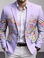 Men's Feathers Blazer Jacket Coat Comfortable Breathable Artistic Casual Daily Party Evening Wear 3D Print Buttons Multi Pocket Spring Fall & Winter Notch Long Sleeve Purple Green Gray