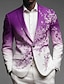 Carnival Men's Graphic Blazer Jacket Coat Fashion Comfortable Breathable Artistic Casual Party Evening Wear Festival 3D Print Buttons Multi Pocket All Seasons Notch Long Sleeve Purple Dark Purple