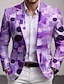 Men's Geometic Blazer Jacket Coat Fashion Comfortable Breathable Artistic Casual Casual Daily Party Evening Wear 3D Print Buttons Multi Pocket Spring Fall & Winter Flat collar Long Sleeve Blue Purple