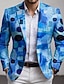 Men's Geometic Blazer Jacket Coat Comfortable Breathable Artistic Casual Daily Party Evening Wear Causal Pocket 3D Print Buttons All Seasons Notch Long Sleeve Blue Red Green
