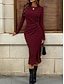 Women's Midi Dress Sheath Dress Wrap Dress Shift Dress Elegant Fashion Modern Outdoor Vacation Party Regular Fit Slim Plain Long Sleeve Crew Neck Blue Black Burgundy Brown Summer Spring Fall Winter