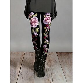 Dames broek Leggings Gezellige leggings Streetwear Casual Volledige lengte Natuurlijk Bloem Afdrukken Comfortabel Voor buiten Feestdagen Uitgaan Wijn Zwart Blauw Hemelsblauw Herfst Normale pasvorm