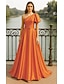 A-lijn Tot de grond Avondjurken Baljurk Formele kleding Elegant Zijdeachtig Korte mouw Schouderafhangend Bruiloft Formeel Zak Satijn met Strik(ken)