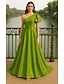 A-lijn Tot de grond Avondjurken Baljurk Formele kleding Elegant Zijdeachtig Korte mouw Eén-schouder Tuinfeest Bruiloft Zak Satijn Stretchsatijn met Ruches Geplooid