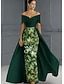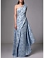 A-lijn Tot de grond Avondjurken Baljurk Formele kleding Elegant Bloemig Mouwloos Eén-schouder Bruiloft Formeel Zak Jacquard met Bloemenprint Geplooid