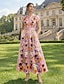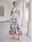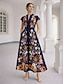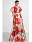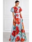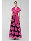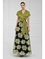 A-Lijn Vloer Lengte Avondjurk Baljurk Formele Jurk Celebrity Stijl Korte Mouw Shirt Kraag Tuin Feest Formele Riem Sjerp met Bloemenprint