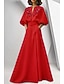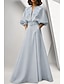 A-lijn Asymmetrisch Baljurk met cape Avondjurken Formele kleding Elegant Lange mouw V-hals Bruiloft Formeel Zak Satijn met Plooien Zak