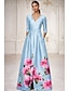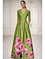 A-lijn Tot de grond Avondjurken Elegant Vintage Bloemig 3/4 mouw V-hals Tuinfeest Bruiloft Satijn met Bloemenprint Plooien Zak