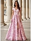 A-lijn Tot de grond Avondjurken Baljurk Elegant Vintage Bloemig Korte mouw V-hals Tuinfeest Bruiloft Zak Jacquard met Bloemenprint Plooien Split