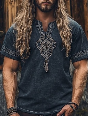 Voor heren Overhemd Normaal shirt Viking Vakantie Hawaii Donkerblauw Korte mouw V-hals Zomer Lente Kleding Etnisch & Religieus