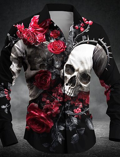 Heren Kostuums Schedels Shirt Knopen Shirt Korte Mouw Donker Punk Gothische Stijl Vakantie Zomer Lente Omdraaien 3D Print Gekraagde Shirts Zwart 1 Zwart Zwart 2