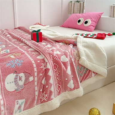 Kerst sneeuwvlok sherpa fleece deken, dikke warme gelaagde deken, cadeau gezellige deken voor de bank &bed, vakantiehuisdecoratie