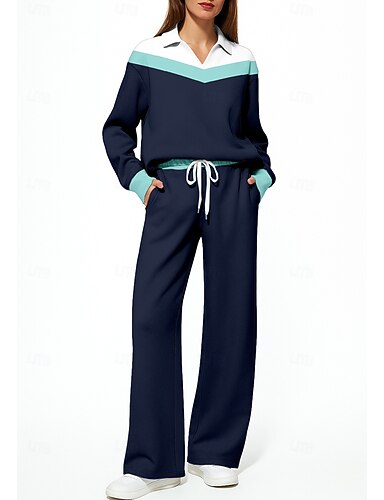 Dames Sweatshirt Trainingspak 2-delig trainingspak Trekkoord Zak Geometrisch Atletische kledingset Sportoutfits Lente Herfst Winter Leger Groen Rood Beroep Voor buiten Reizen Lichtgewicht Modieus