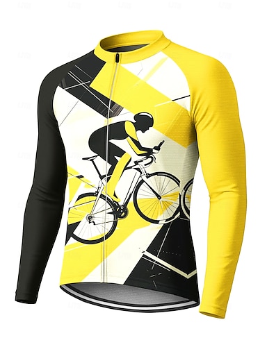 Voor heren Wielrenshirt Downhill Jersey Geometrisch Stripfiguur Contrastkleur Lange mouw Fietsen T-shirt Shirt Compressiekleding met 3 achterzakken Bergracen Wegwielrennen UV-zonbescherming