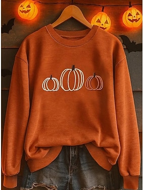 Dames Trui-sweatshirt Grafisch Doodskoppen Pompoen Actief Modieus Streetwear Lange mouw Strakke ronde hals Normale tops Straat Dagelijks gebruik Casual Afdrukken Zwart Wit Geel Blozend Roze Rood