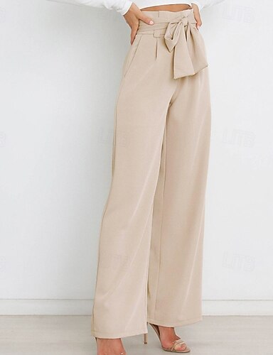 Dames Katoen Linnen Broek Zomer Broeken Baggy Broeken Strand Broeken Vakantie Basis Casual Volle Lengte Hoge Taille Effen Brede Pijpen Elastische Taille Zacht Ademend Micro-elastisch Strand Vakantie