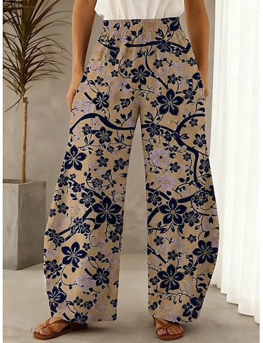 Dames Breed Been Broeken Palazzo-broek Vakantie Modieus Streetwear Volledige lengte Medium Taille Bloemig Grafisch Zak Elastische taille Afdrukken Comfortabel Comfort Ademend Rekbaar Dagelijks Buiten