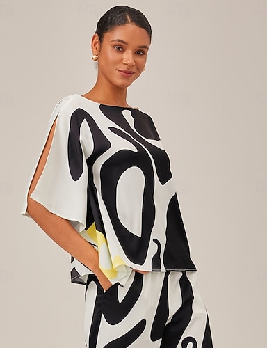 dames wijde broek zwart satijn lange print vakantie casual dagelijks lente zomer herfst