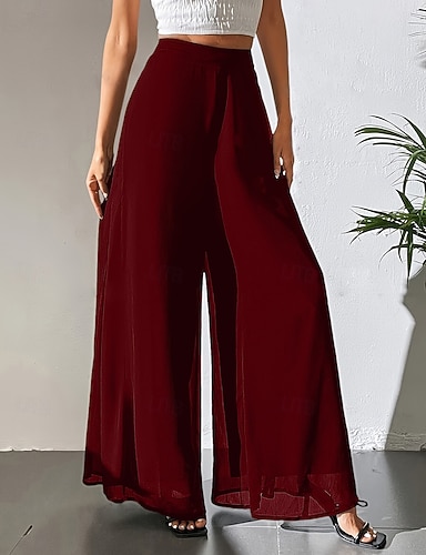 Dames Broek met wijde pijpen Broeken Chiffon Elegant Bohemen Vakantie Vakantie Strand Zwart Zomer XS S M