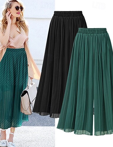 Dames Chiffon Breed Been Chinese Vakantie Streetwear Basic Enkellengte Middelhoge taille Effen Lapwerk Elastische tailleband Ademend Inelastisch Dagelijks Buiten Streetwear blauw bordeaux Zwart Groen
