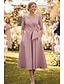 A-lijn Over de knie Feestjurk Cocktail jurk 3/4 mouw V-hals Elegant Vintage Formeel Satijn Moeder van de bruid jurk met Strik(ken) Ruches