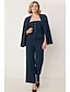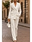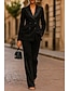 Dames Vrouw 2-delige pakken Broekpakken Formeel Bruiloft gast Satijn Stretch crêpe Elegant Vintage Eenvoudig Lange mouw Tot de grond Inkeping Ingesneden revers Enkele rij knopen