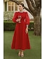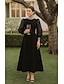 A-lijn Over de knie Feestjurk Cocktail jurk Flare-jurk Lange mouw Overhemdkraag Elegant Vintage Formeel Fluweel Moeder van de bruid jurk met Ruches Effen kleur